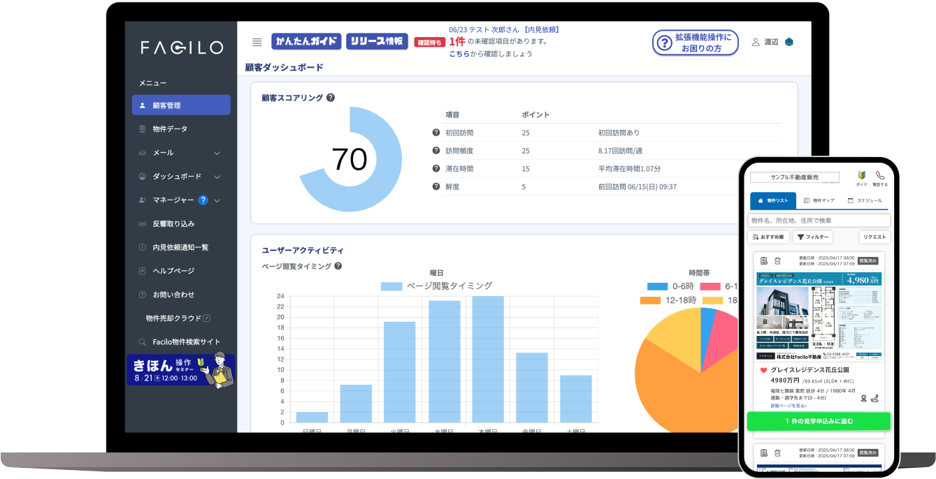 営業担当はそのデータをもとに、温度感の高い顧客を数値で特定し、最適なタイミングでフォローできます。これにより「なんとなくの追客」から「成約確度の高い顧客に集中アプローチ」へ移行。