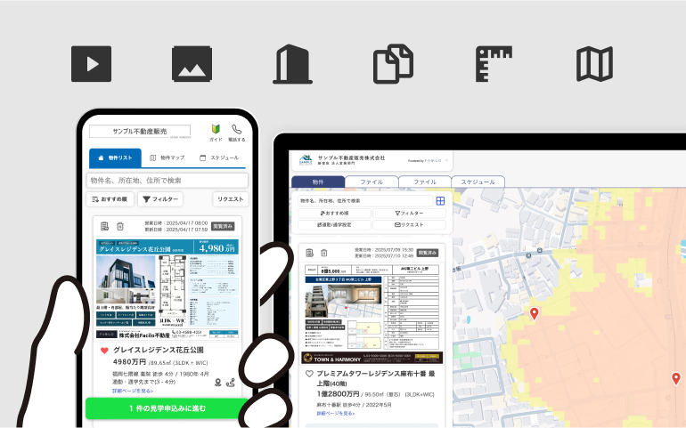 スマホからでも快適に検討でき、営業担当は「どの物件に興味を持ったか」を把握できます。“この会社だから任せたい”と選ばれる顧客体験を実現します。