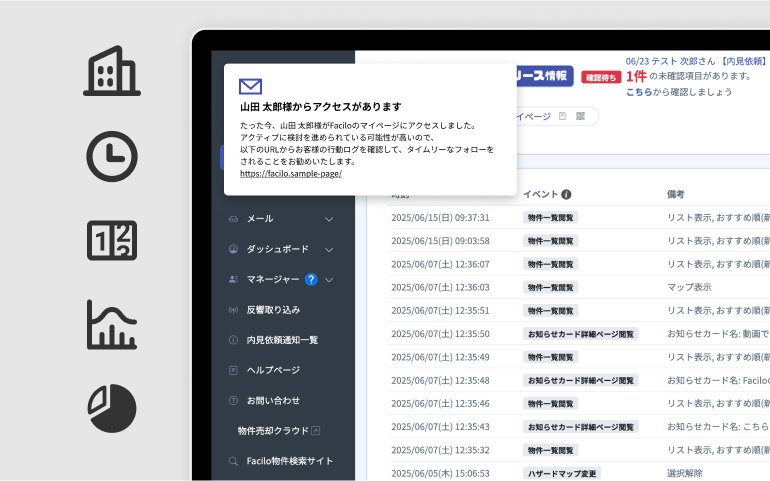 条件に合う新着や価格変更を自動検知し、即提案が可能