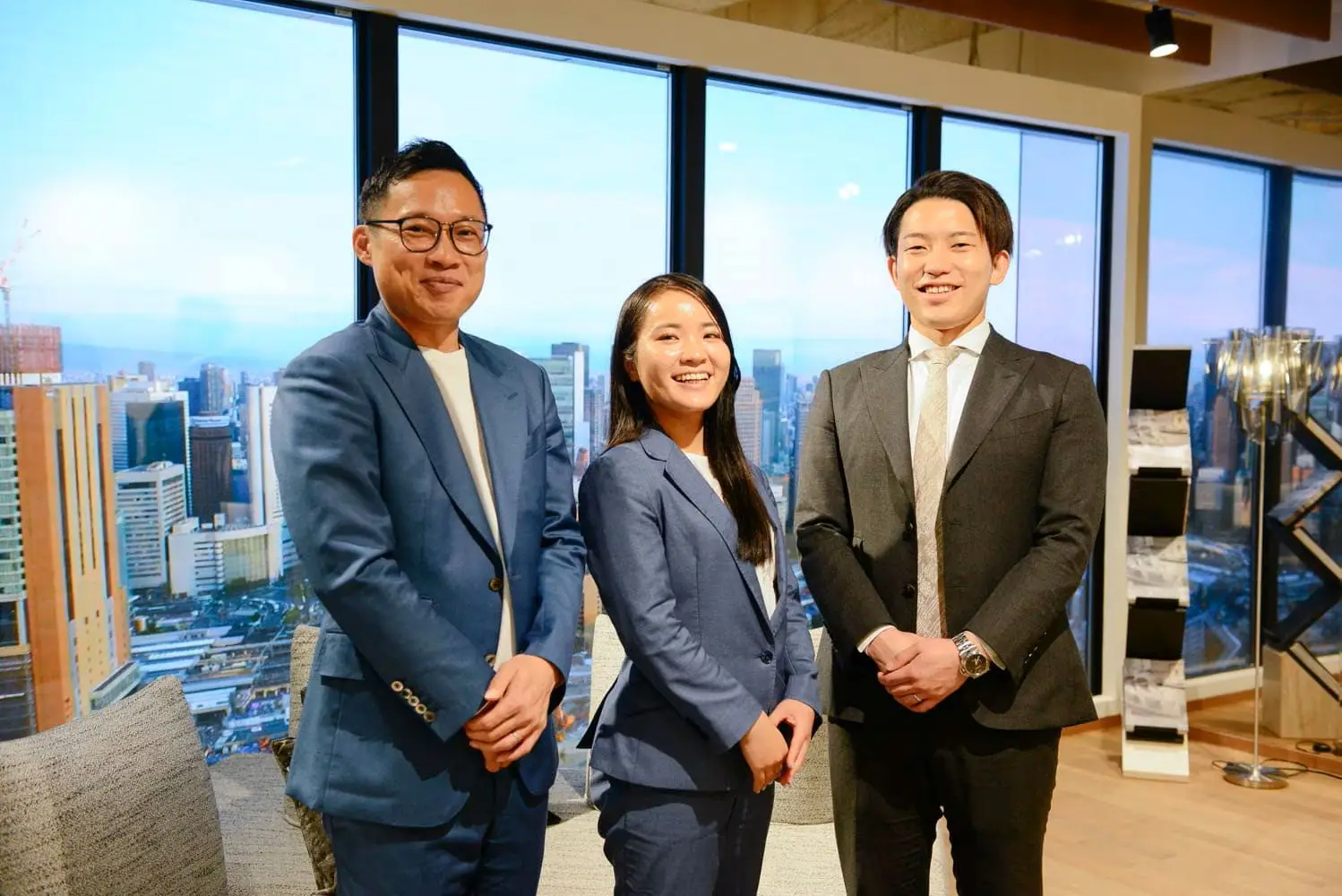 Faciloの導入により、この課題はどのように解決されたのか。取締役の芝崎健一様、御堂筋本店店長の塚口智哉様、仲介事業部営業1課の向上沙希様にお話を聞きました。