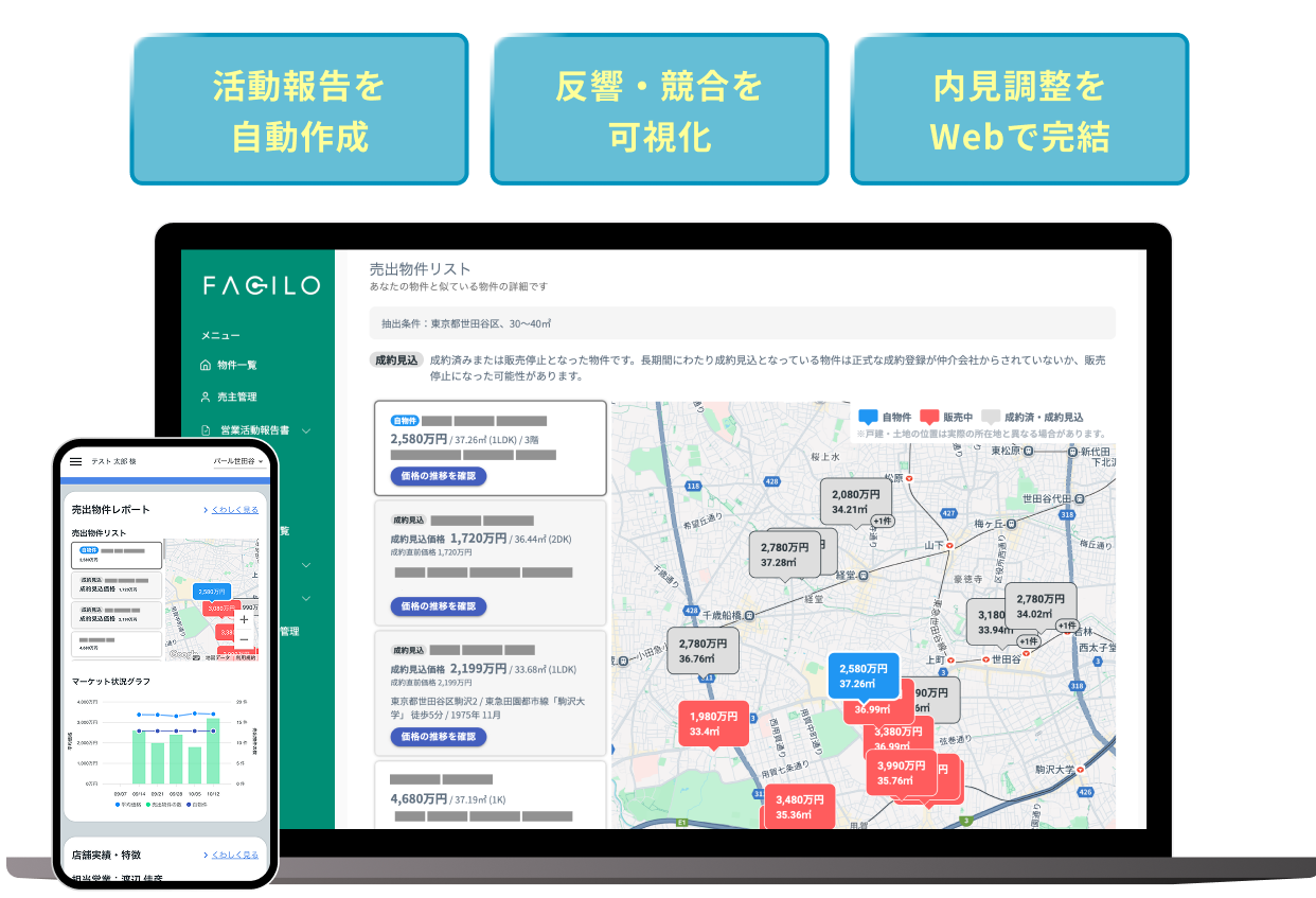 Facilo物件売却クラウド は、査定後の売主対応を仕組み化し、営業担当と売主のコミュニケーションをスムーズに。