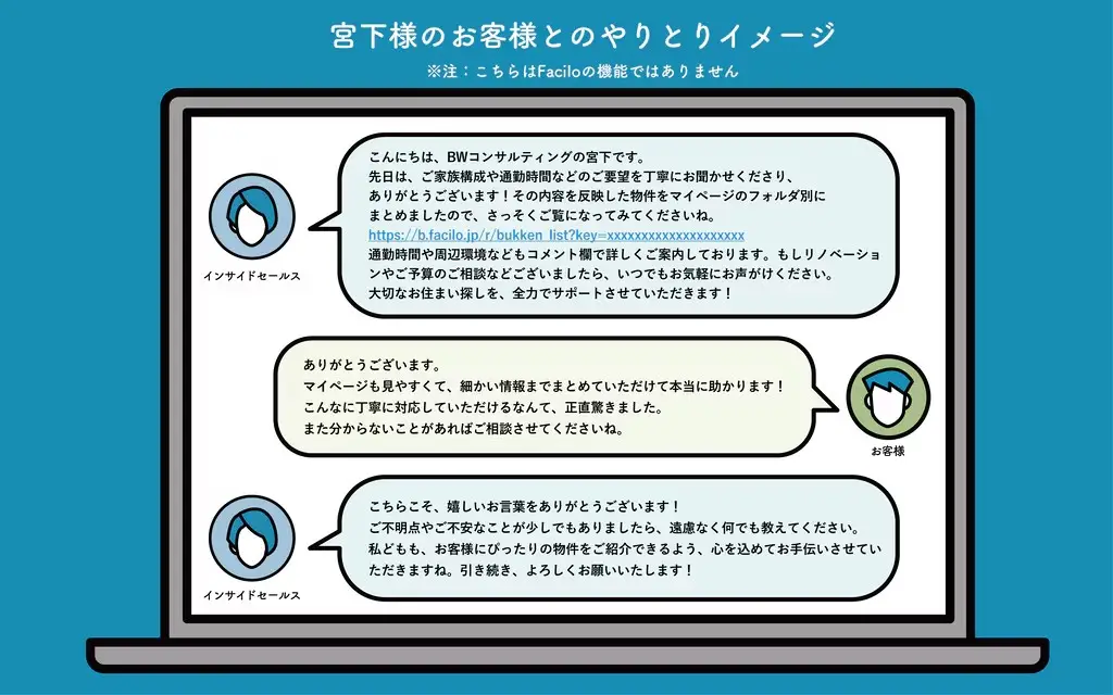 ※注:画面はイメージです、実際のやりとりとは異なります。また、こちらはFaciloの機能ではありません