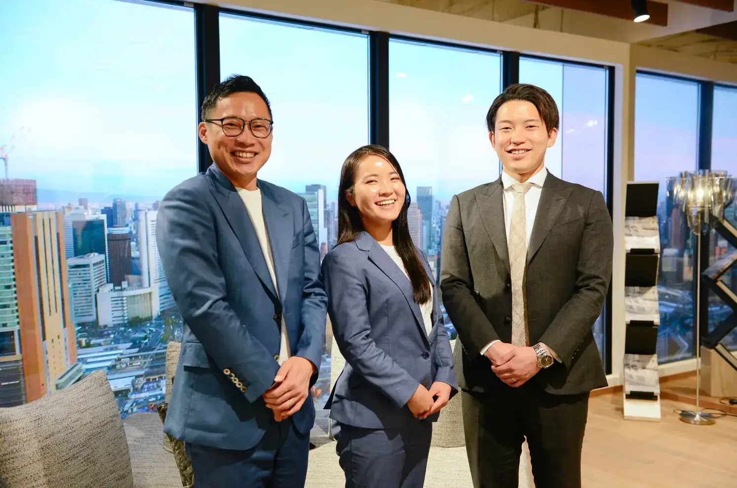 Faciloの導入により、この課題はどのように解決されたのか。取締役の芝崎健一様、御堂筋本店店長の塚口智哉様、仲介事業部営業1課の向上沙希様にお話を聞きました。
