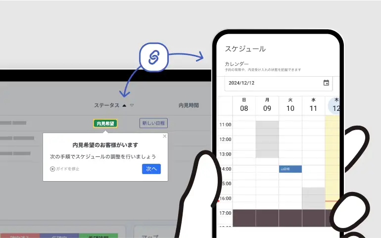内見予約をオンラインで完結できるシステムにより、営業担当と売主がクラウド上でスケジュールを共有・管理できます。