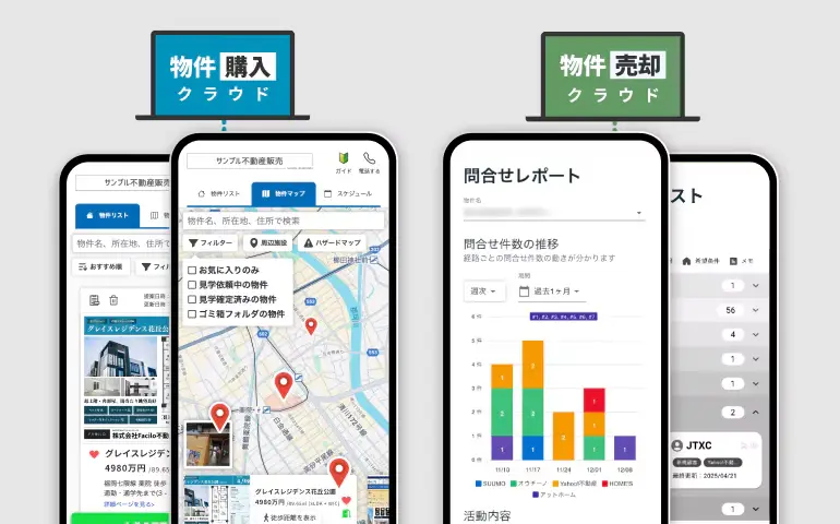 購入クラウドでは物件情報や周辺施設情報をマイページで一元管理し、売却クラウドでは販売活動の進捗を可視化できる専用マイページを提供します。