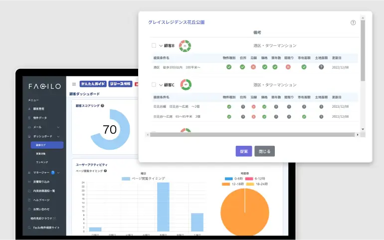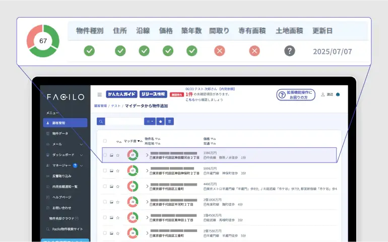 顧客ニーズに合った提案を実現物件マッチ度診断により、顧客の希望条件と物件の適合度を定量的に評価し、最適な物件提案を実現します。